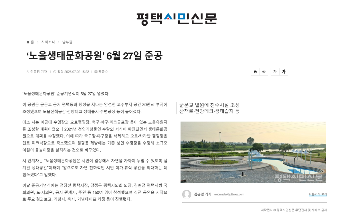 [평택시민신문] 하이오 주식회사 '노을생태문화공원'6월 27일 준공